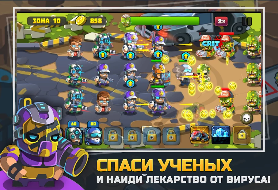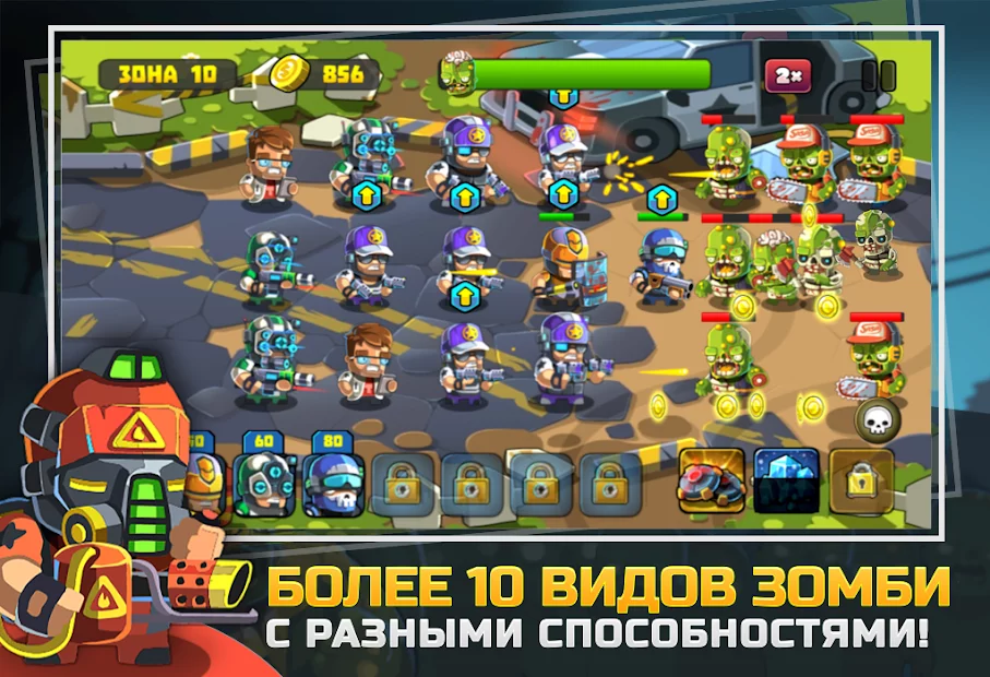 Задача игрока в Zombie Apocalypse - сохранить невредимой научную базу, которую атакуют армии кровожадных зомби. Сделать это не так уж и легко, ведь ходячие мертвецы голодны и озлоблены. Самому не справиться. Чтобы выиграть, необходимо собрать отряд из отъявленных смельчаков и удерживать оборону, пока группа ученых изобретает лекарство против ходячих мертвецов. Представленная игра отличается красочным геймплеем, качественной графикой и большим количеством уровней разной сложности.