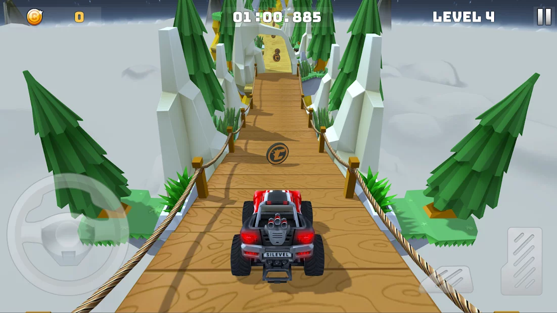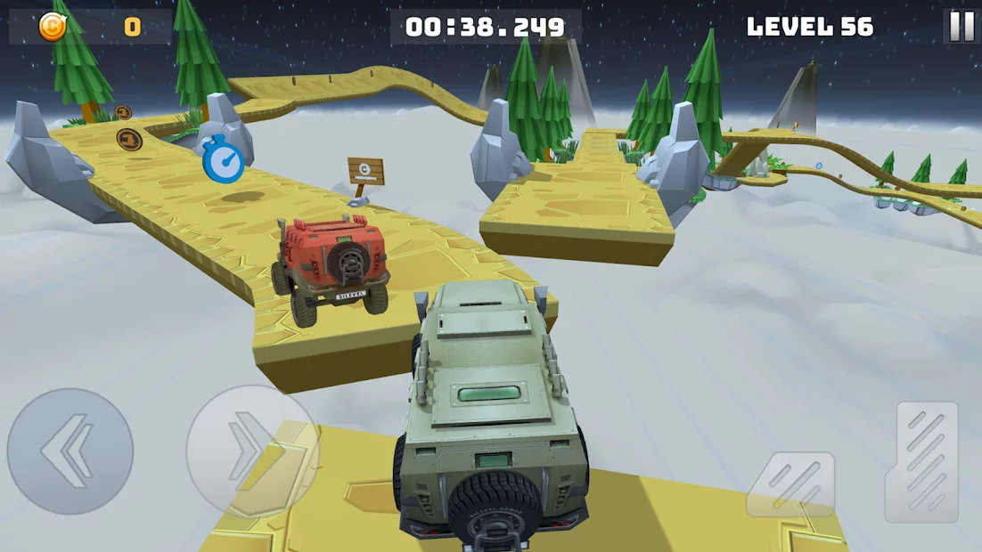 Mountain Climb : Stunt - игра с отличной 3D-визуализацией и музыкой. Преодолевайте сложные препятствия и проезжайте трассы на своем массивном внедорожнике. В игре можно выбрать автомобиль из 5-ти предложенных моделей. Копите монеты, собирайте бонусы и тратьте их на тюнинг. Создайте уникальное авто своей мечты и обгоняйте самых быстрых соперников.