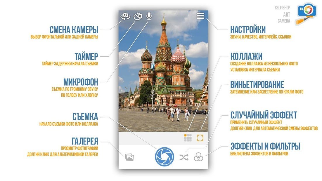 Селфишоп Арт Камера – Прекрасный помощник для любителей селфи. Это приложение для создания красивых фотографий с использованием большого количества фильтров и эффектов, рамок и стикеров. Кроме того, здесь есть возможность также отредактировать уже имеющиеся в телефоне фото и создавать креативные коллажи.