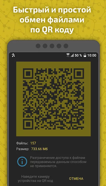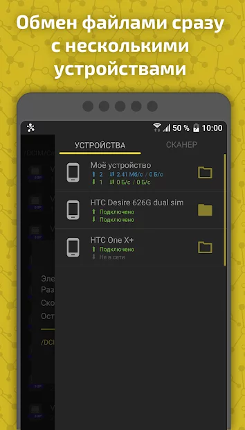 Программа организует передачу файлов по сети Wi-Fi между устройствами.