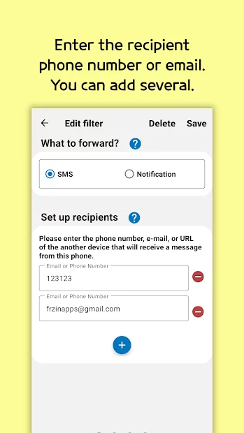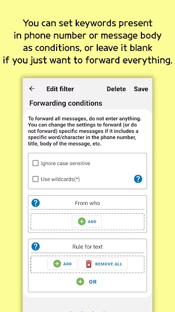SMS forwarder – весьма удобный эффективный инструмент тем пользователям, которые постоянно пользуются СМС перепиской. Приложение позволяет сделать процесс более комфортным, быстрым по времени. С помощью программы можно фильтровать материал, удалять, копировать, вставлять, отправлять текст, а также создавать необходимые папки, адреса с последующим мгновенным их нахождением.
