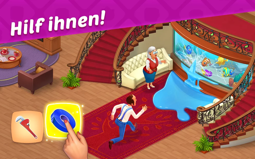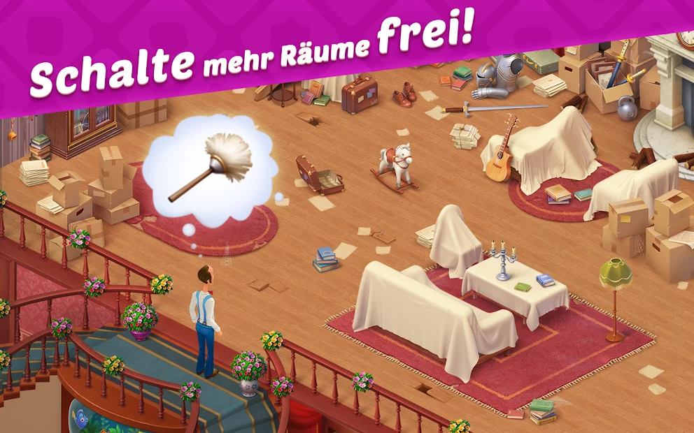 Homescapes ist ein interessantes Spiel, das sich auf Rätsel und das Genre von drei in einer Reihe bezieht. In dieser Anwendung besteht Ihre Hauptaufgabe darin, das Erscheinungsbild Ihres alten Hauses bis zur Unkenntlichkeit zu ändern. Dazu müssen Sie die täglichen Aufgaben erledigen und Spielwährungsmünzen erhalten. Mit ihnen können Sie leicht neue Möbel erwerben und Ihre Villa damit ausstatten. Das Puzzle wird Sie mit einer Vielzahl von Aufgaben unterschiedlicher Komplexität, hochwertiger Grafik und vielen Boni begeistern.