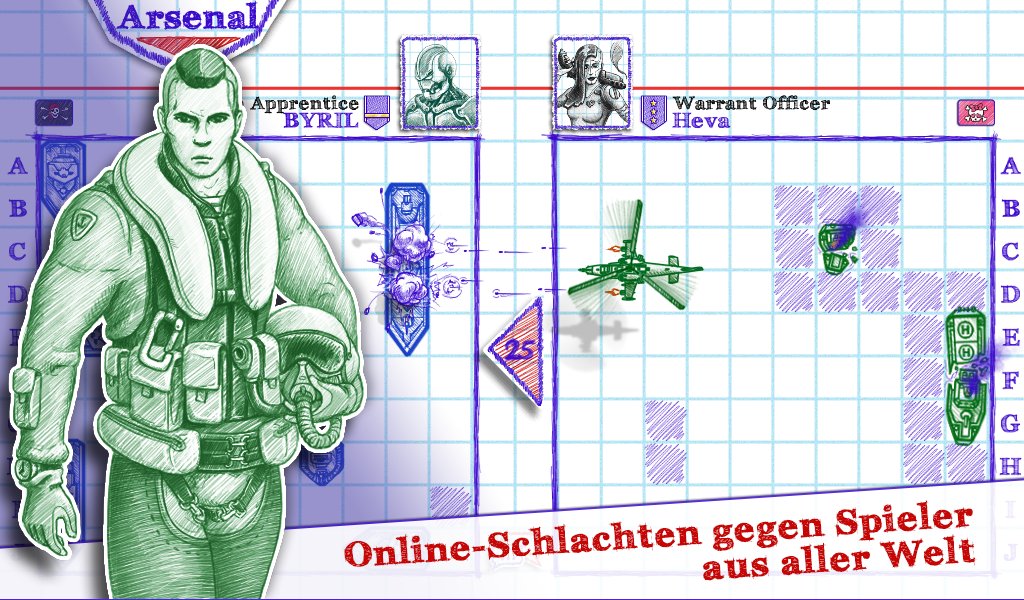 Schiffe versenken 2 ist die Fortsetzung der Adaption des legendären Brettspiels, das noch lange Aufmerksamkeit erregen wird. Alle Aspekte des Spiels wurden verbessert. Die Grafik wurde beeindruckender, die Gegner schlauer und aggressiver, das militärische Arsenal breiter. Jetzt enthält es verschiedene Arten von Kriegsschiffen, Bomber und vieles mehr. Und das ist noch nicht alles, denn jetzt können Spieler nicht nur über Bluetooth auf den Eins-zu-Eins-Match-Modus zugreifen, sondern auch im Online-Modus mit Spielern aus aller Welt konkurrieren. Zeigen Sie Ihren Rivalen, wozu ein echter Flottenadmiral fähig ist.
