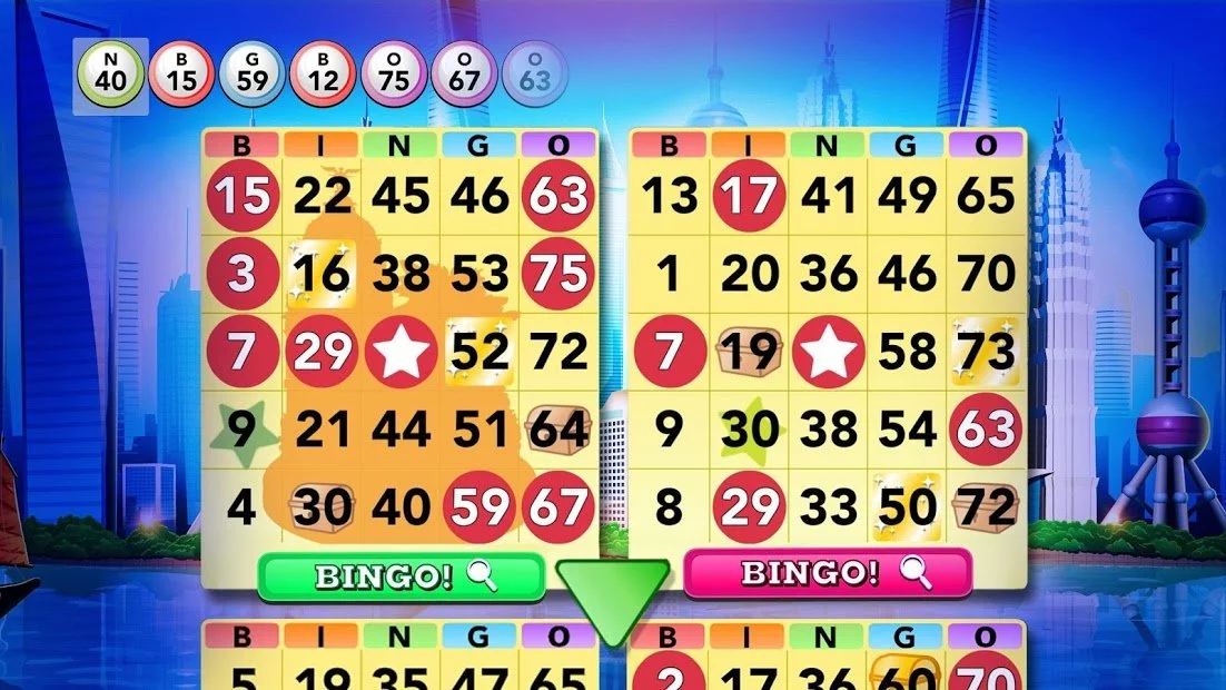 Bingo Blitz: Bingo-Spiele - Der Spielprozess wird in Form einer Roadmap implementiert, auf der Sie durch die Städte reisen, in denen Bingo- und Slots-Meisterschaften stattfinden. Wenn Sie in der Stadt ankommen, wählen Sie eines von zwei Spielen aus, gewinnen das Turnier und ziehen in die nächste Stadt. Beim Bingo erhalten die Spieler Karten mit Zahlen und das Spiel gibt Zahlen aus. Wenn es eine auf der Karte gibt, schließen Sie sie. Derjenige, der die Karte zuerst füllt, gewinnt. In den Slots drehen Sie die Rolle mit Zahlen und sammeln eine Gewinnkombination.