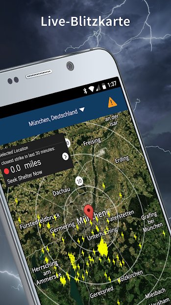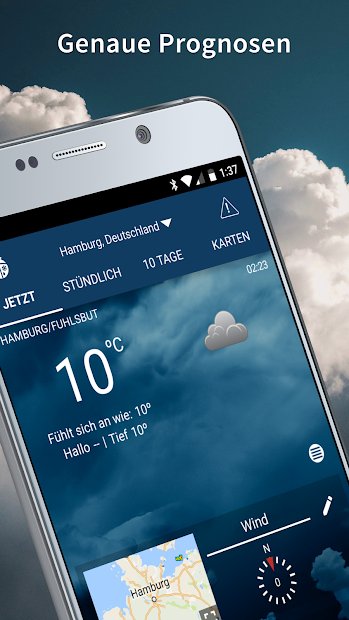 Wetter von WeatherBug - Praktische Wetter-App. Sie können die aktuellen Wetterbedingungen für mehrere Stunden und Tage im Voraus anzeigen. Das Wetter kann für jede Stadt, die Sie interessiert, angezeigt werden. Zeigt Grad, Luftfeuchtigkeit, Windgeschwindigkeit und vieles mehr an. Sie können die Temperatur auch in einem beliebigen Bereich des Bildschirms anzeigen. Bleiben Sie mit dieser nützlichen App über das Wetter auf dem Laufenden.