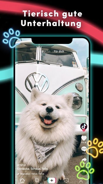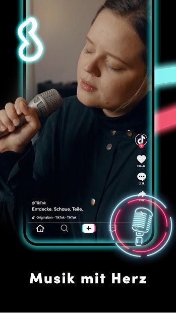 In der Anwendung können Sie nicht nur von anderen Personen erstellte Videos ansehen, sondern auch Ihre eigenen erstellen. Dafür sind grundlegende Tools zum Arbeiten mit Videos integriert, und es gibt auch eine große Auswahl an Filtern, Emojis und Masken.