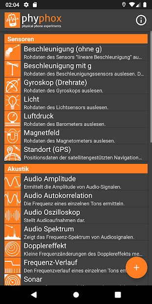 Die Phyphox-Anwendung ist sowohl für Studenten als auch für Wissenschaftler nützlich. Damit können Sie verschiedene Experimente durchführen. Mit der Phyphox-App wird Ihr Smartphone zum Magnetometer, Pendel, Beschleunigungsmesser, Gyroskop oder Näherungssensor. Der Zugriff auf die Sensoren erfolgt über die Bluetooth-Funktion. Dieses Programm verfügt über eine einfache und intuitive Benutzeroberfläche. Selbst der unerfahrenste Internetbenutzer sollte mit seinen Einstellungen in der Systemsteuerung fertig werden. Der Entwickler versuchte zu machen