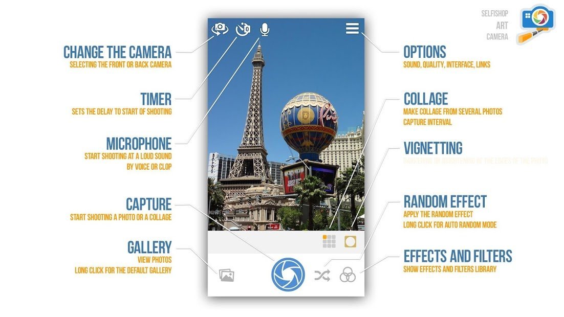 Selfishop Art Camera - A great helper for selfie lovers. This application is for creating beautiful photos using a large number of filters and effects, frames and stickers. In addition, there is the opportunity to also edit photos already on the phone and create creative collages.