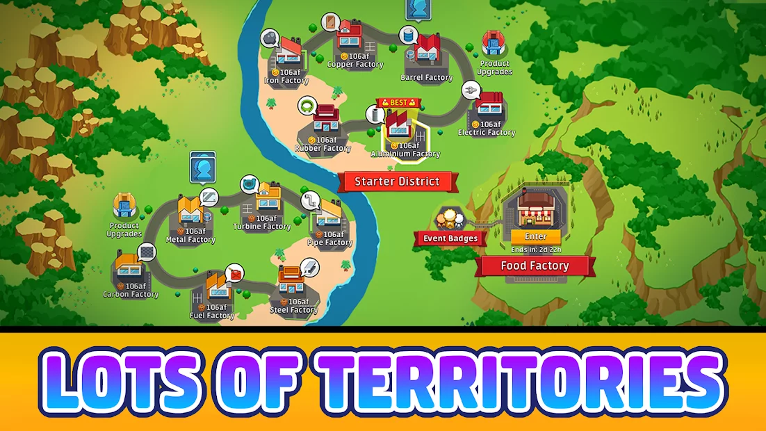 Idle Factory Tycoon - A game for beginner businessmen. This simulator is presented with fascinating gameplay in which each participant will be allowed to test his strength as an entrepreneur and is engaged in the processing of raw materials. In addition, the player’s task will be to export goods to the market and increase revenue from turnover.