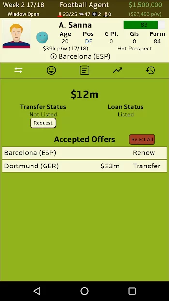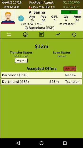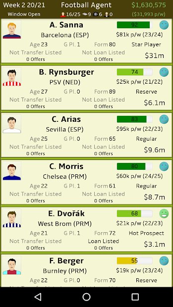 Football Agent is an exciting sports manager on Android, where you can try your hand at the role of a football agent. Make profitable deals between different clubs, look for promising talents of world football, buy and sell them. Earn as much money as possible on profitable deals and become the best football agent!