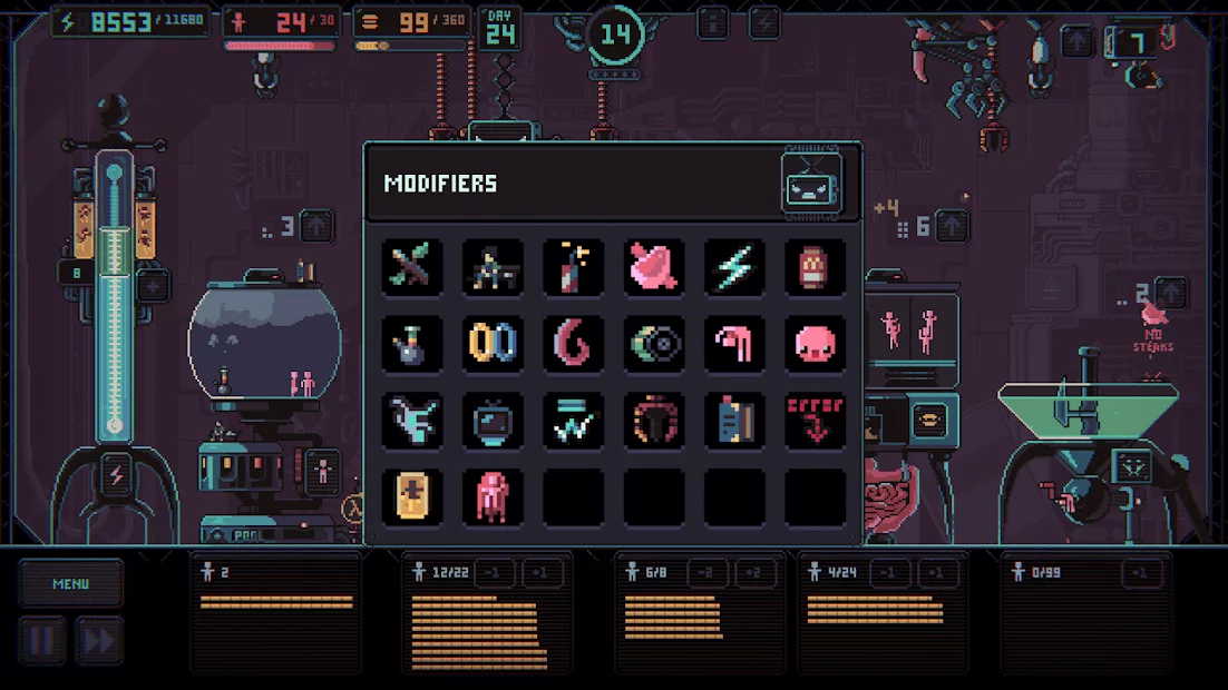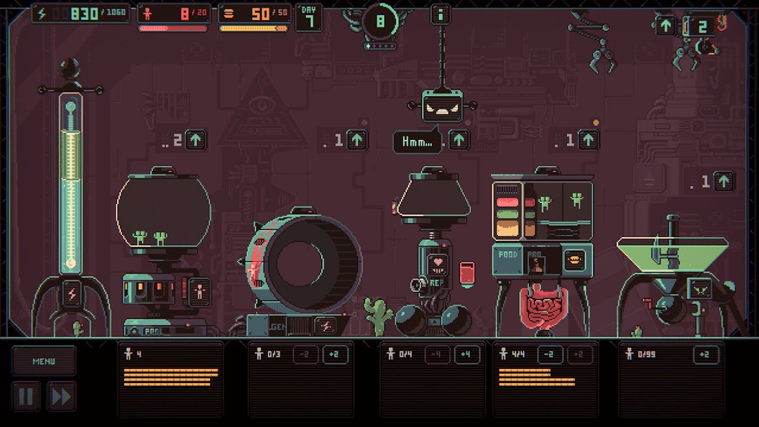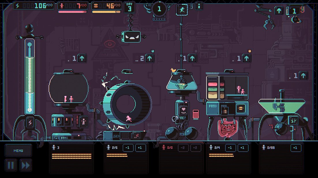 Despotism 3k - an exciting game with black humor now on Android! Artificial intelligence has captured humanity and now everyone has become a consumable. Under your reliable control will be a few machines that perform certain functions. Use them correctly and follow the conditions to achieve the desired result. Keep a balance and develop a new kind of people who will be completely subordinate to artificial intelligence.