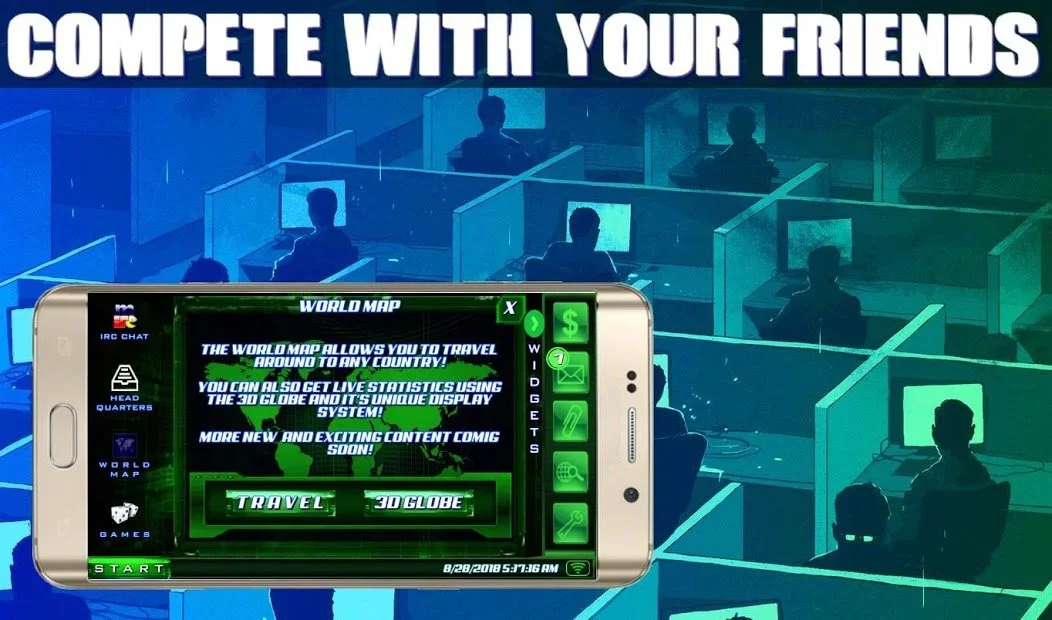The Lonely Hacker - Have you dreamed of becoming a hacker? - you have every chance to test yourself in such an unusual skill. Thousands of computers in front of you, scattered all over the earth, infect them with a virus and take money, you can also hack banks and money vaults, getting rich at the same time. But do not relax, because various services from different countries really want to catch you. You will be pleased with the availability of special hacking devices.