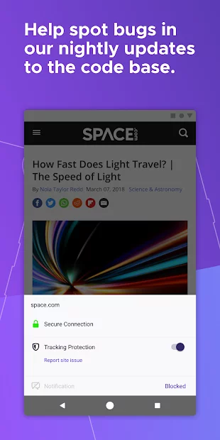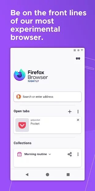 This Firefox Nightly app is for those who wish to test or try out all new versions of the browser, or try and evaluate all releases. After the browser has been tested, you can leave a review, or suggestions about any shortcomings, or, on the contrary, you need to praise. Developers can hear your voice or feedback and improve something in the browser when the next release is released.