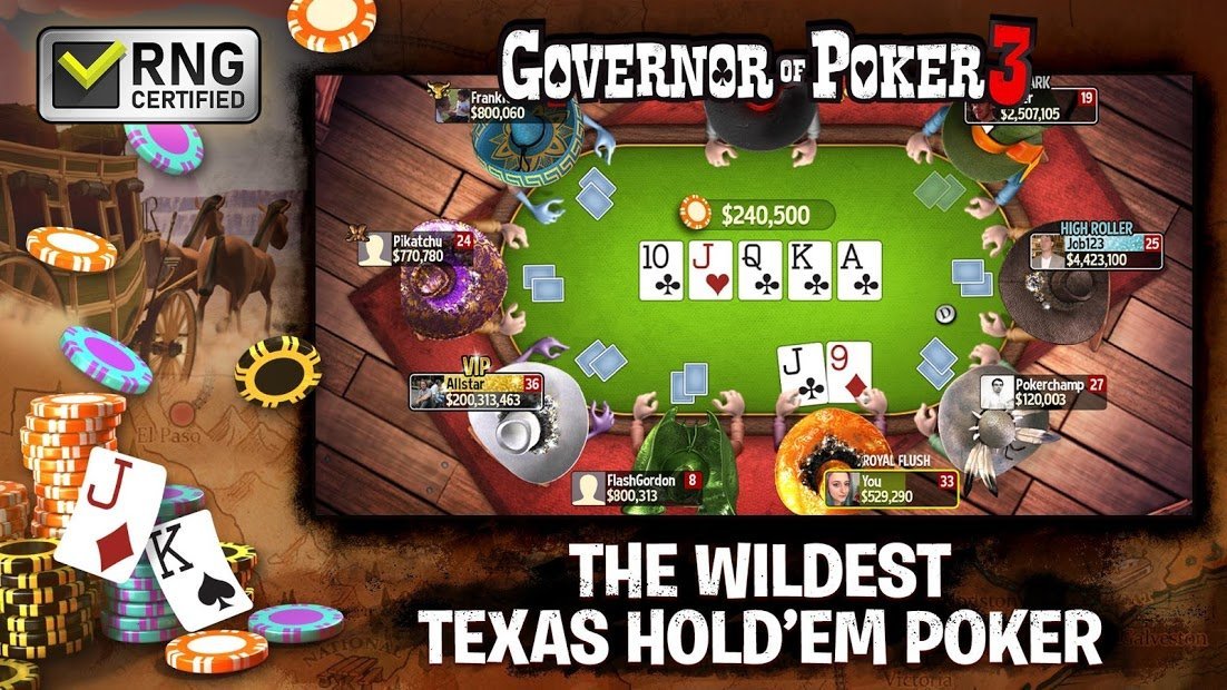 Governor of Poker 3 is an online poker game for smartphones. A game for lovers of excitement. It includes many different modes and several tournaments. In this game you have the opportunity to receive free chips. The game has colorful graphics and the presence of the best players from around the world. And by inviting your friends to this game, you will increase your winnings.
