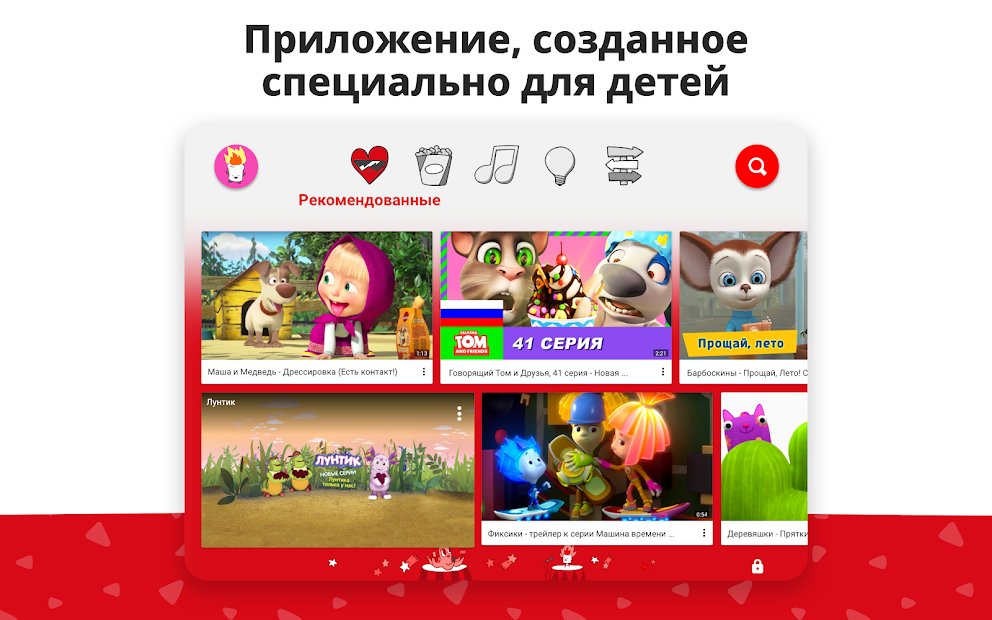 YouTube Kids - Thanks to this service from Google, caring parents do not need to fence their children from adult content on Youtube on their own. There will be no questionable videos with an age limit of 18+ in this application. The program contains only children's content, such as cartoons. This application will distract your child for a long time, without harming his psyche.