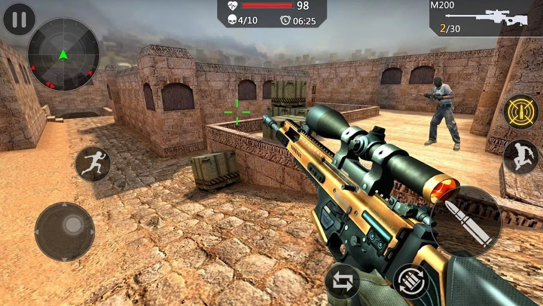 Fury Strike: Anti-Terrorism Shooter - An excellent arcade action game with a huge number of levels. Being in it is like shooting at a shooting range at targets moving from all sides. You need to free the base belonging to the military from the terrorists who seized it, for this, take a powerful, most modern and rapid-fire weapon and punch your way, lying down literally with packs of opponents. After each stage of the passage, the quality of the weapon improves markedly. The game has good, nice graphics, simple and intuitive controls and vivid soundtracks.