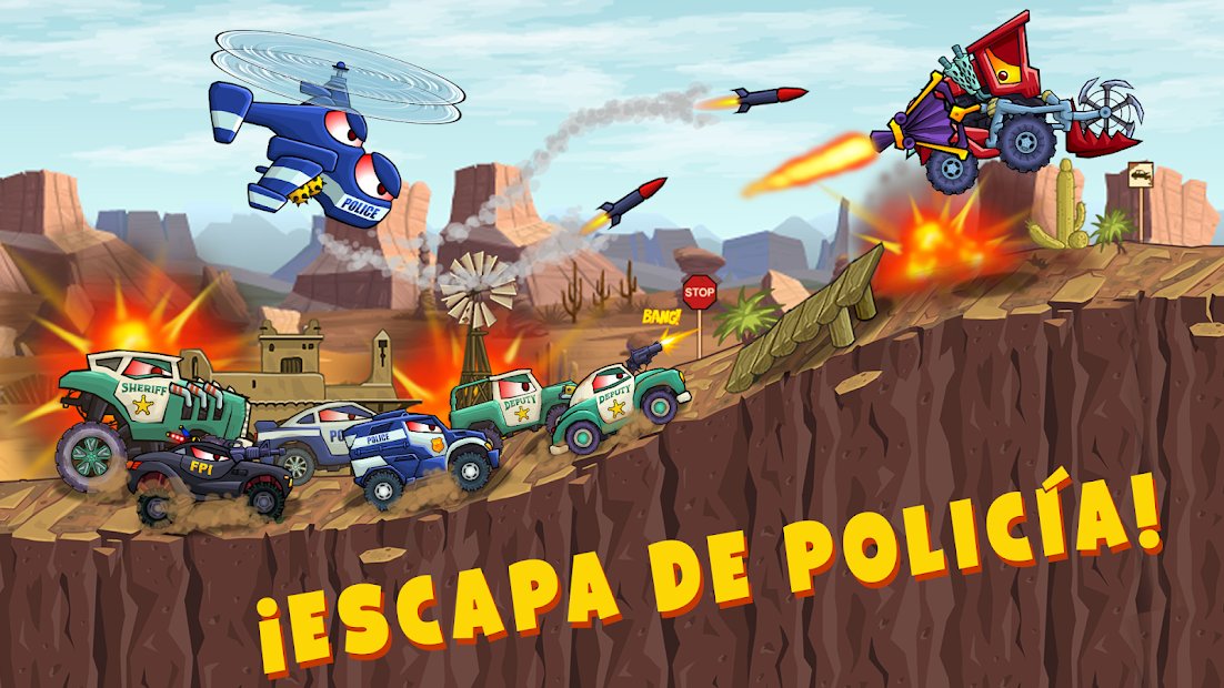 Car Eats Car 3 - Racing Game: una carrera emocionante para Android, donde deberás participar en carreras en autos potentes. Conduce oponentes en pistas peligrosas para salir adelante. Estás esperando en el camino saltos altos y profundos acantilados. A medida que avanzas en el juego, mejora tu auto. Por ejemplo, aumentar la velocidad, nitro, armadura y daño. Todos los jugadores intrépidos esperan una historia fascinante y buenos gráficos.