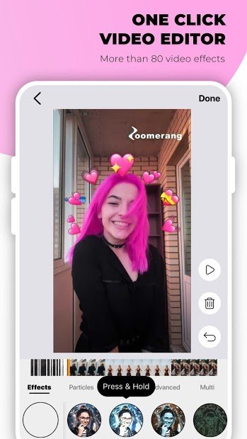 Zoomerang es una aplicación única que le permite aplicar efectos especiales, filtros y música al video que graba en tiempo real, que puede compartirse de inmediato a través de las redes sociales. Este programa le permite crear impresionantes materiales de video, al momento de filmar el archivo de video se pasa a través de varios filtros y el sonido de una gran biblioteca de música se ajusta en él. El uso de la aplicación no requiere registro.
