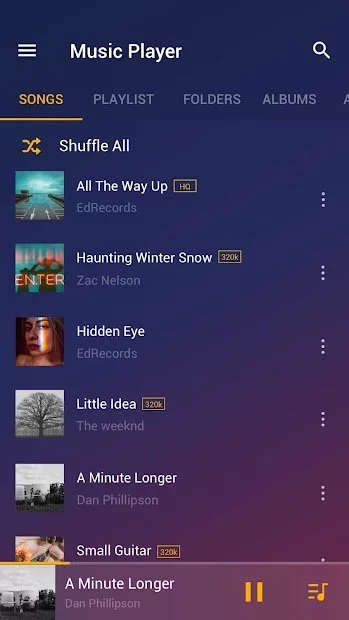 Music Player (xxx) es uno de los mejores reproductores. Con él, puede encontrar y organizar todos los archivos de música en su teléfono. Las principales ventajas del programa son: