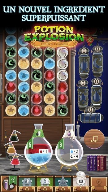 Potion Explosion est un jeu pour ceux qui veulent devenir chimiste et mélanger différents réactifs. Dans cette leçon passionnante, vous devrez faire attention, car il y a un risque que votre laboratoire explose. Par conséquent, vérifiez toujours les réactifs que vous connecterez aujourd'hui. Le jeu se compose de plusieurs niveaux, il doit viser le haut du classement.