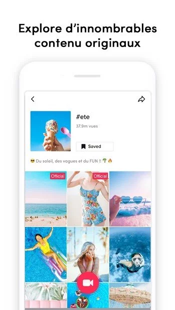 Dans l'application, vous pouvez non seulement regarder des vidéos créées par d'autres personnes, mais également créer les vôtres. Pour cela, des outils de base pour travailler avec la vidéo sont intégrés, et il existe également un grand nombre de filtres, d'emojis et de masques.