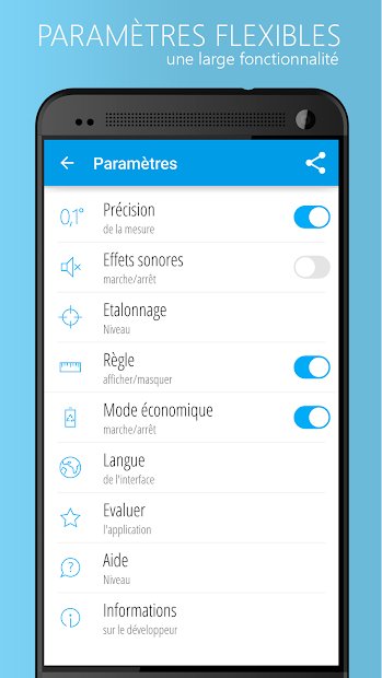 Avec l'application "Niveau à bulle, Fil à plomb", l'utilisateur n'aura pas nécessairement à acheter un niveau pour la construction, car il sera maintenant possible de savoir dans quelle mesure les différents travaux de réparation sont effectués en utilisant votre gadget. L'application montrera facilement l'angle d'inclinaison de différentes surfaces. De plus, une interface très simple et intuitive sera un gros plus, donc l'utilisation du programme ne sera pas plus difficile que le niveau de construction habituel.