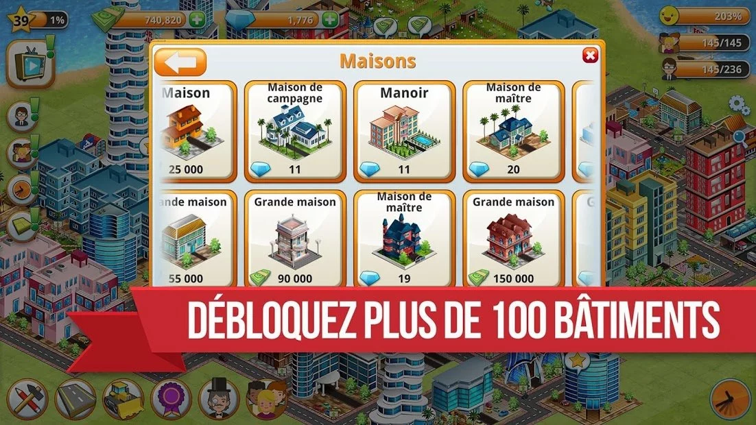 Dans ce jeu - Cité village, simulation d'île - Village Build Sim, tout devra repartir de zéro. Vous aurez un champ ouvert et vous commencerez par construire une petite ville. Attirez plus de résidents dans votre ville. Construisez pour eux l'un des 85 bâtiments disponibles. Créez des emplois, ouvrez de nouveaux domaines - la pêche et même le pétrole. Si vous avez de la chance, vous trouverez de l'or pirate.