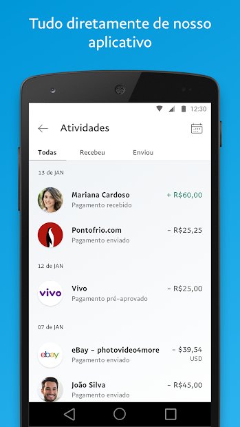 Portanto, agora é possível obter acesso às suas finanças eletrônicas (dinheiro) usando o aplicativo PayPal. Essa é uma das maneiras mais fáceis, rápidas e confiáveis de enviar suas transferências para qualquer cartão ou conta em todo o mundo (mais de 100 países). Além disso, é possível pagar por todos os tipos de serviços na Internet. Todas as suas transações financeiras agora estarão sob controle constante.