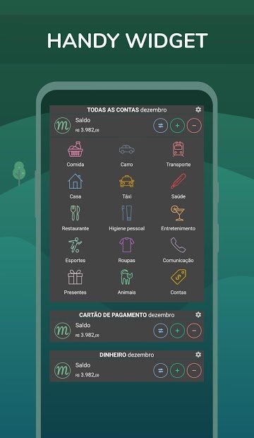 Monefy Pro permite que você acompanhe todas as despesas familiares e faça anotações enquanto faz compras, paga um táxi ou compra ingressos para shows. O aplicativo permite que você controle não apenas suas próprias despesas, mas também as de toda a família ou de um grupo de amigos. Você insere apenas o valor. Se necessário, você pode manter registros em vários dispositivos e sincronizar dados. O usuário pode combinar custos em grupos, criar as categorias de que precisa e manter registros em várias moedas.